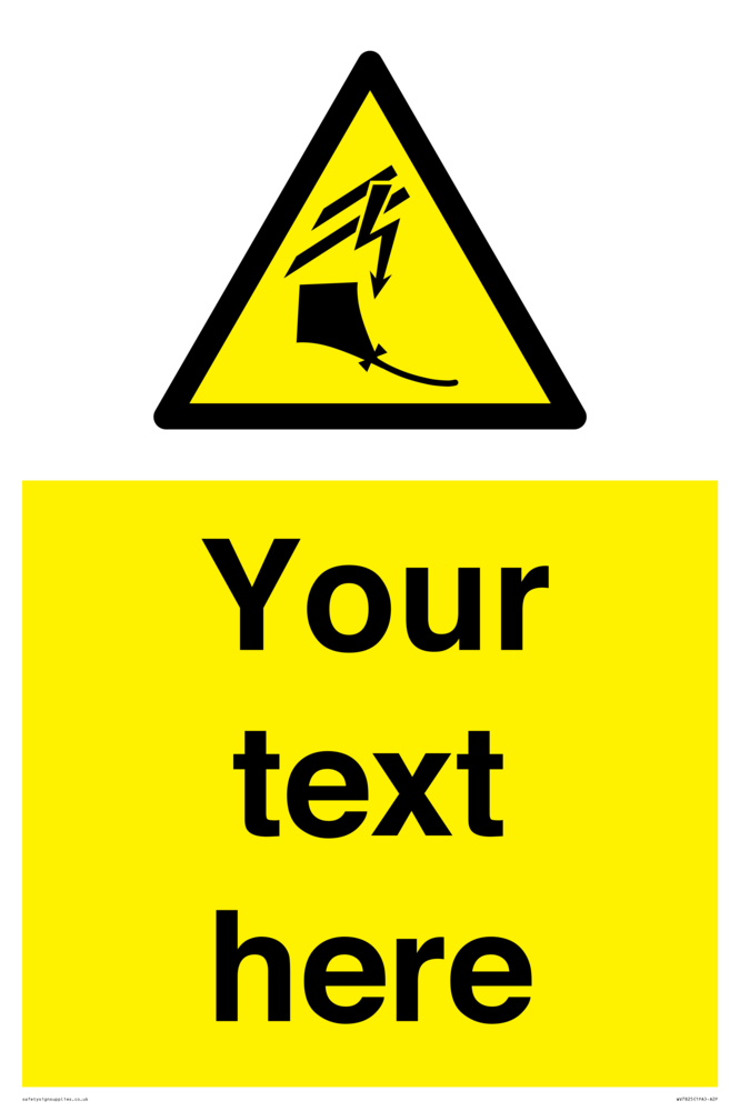 Suitable for mounting on a flat surface. Suitable for mounting on a door. Suitable for mounting on cladding. This product is design to be mounted on the ceiling. Custom signs contain the text required by the customer. With your your text and a standard safety sign symbol - a bespoke sign can fit any requirement.