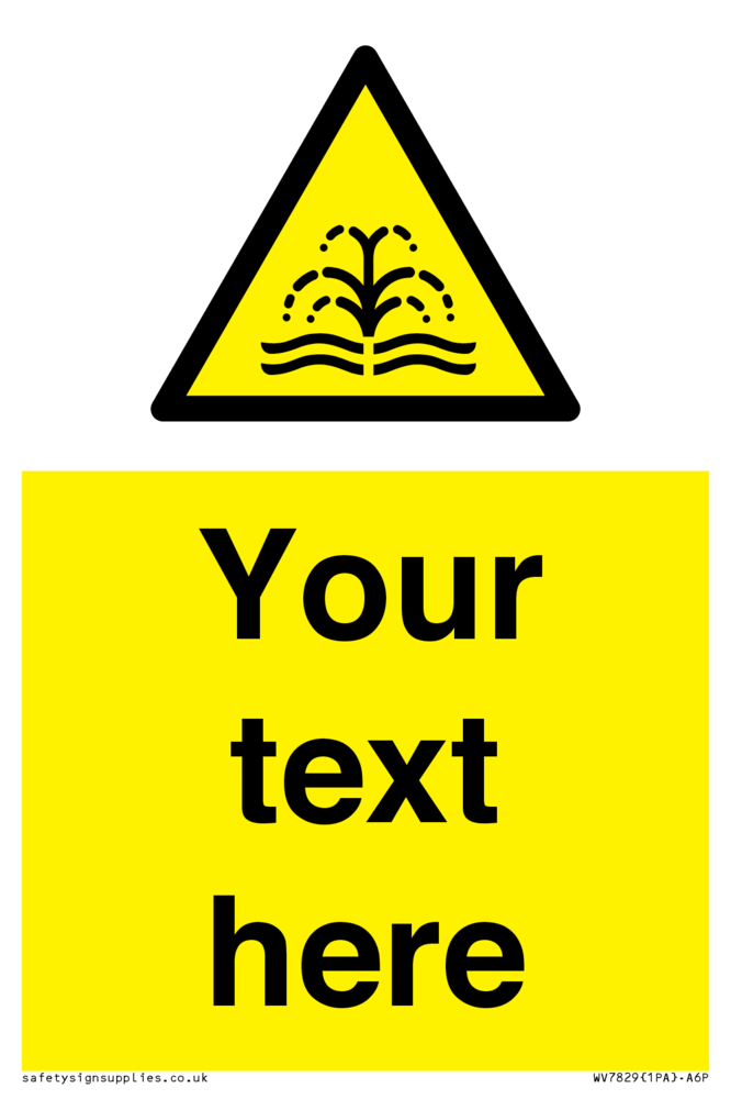 Suitable for mounting on a flat surface. Suitable for mounting on a door. Suitable for mounting on cladding. This product is design to be mounted on the ceiling. Custom signs contain the text required by the customer. With your your text and a standard safety sign symbol - a bespoke sign can fit any requirement.
