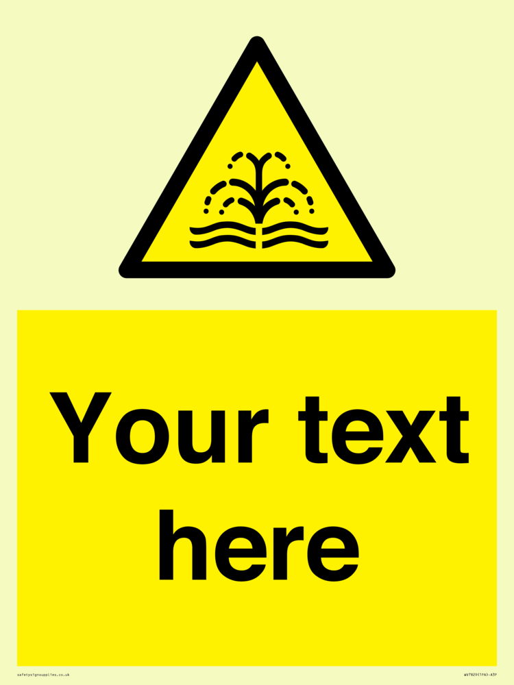 Suitable for mounting on a door. Suitable for mounting on cladding. This product is design to be mounted on the ceiling. Custom signs contain the text required by the customer. With your your text and a standard safety sign symbol - a bespoke sign can fit any requirement.