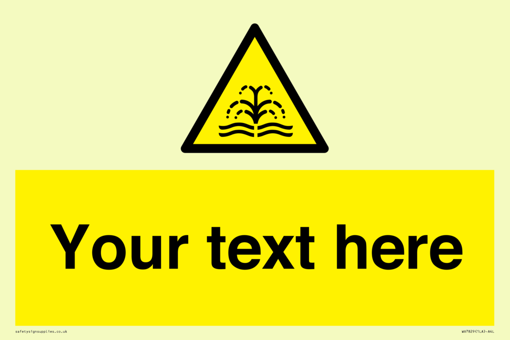 Suitable for mounting on a door. Suitable for mounting on cladding. This product is design to be mounted on the ceiling. Custom signs contain the text required by the customer. With your your text and a standard safety sign symbol - a bespoke sign can fit any requirement.