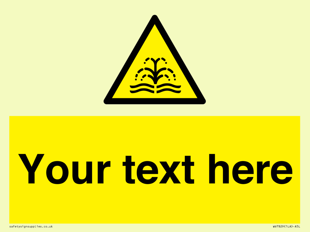 Suitable for mounting on a door. Suitable for mounting on cladding. This product is design to be mounted on the ceiling. Custom signs contain the text required by the customer. With your your text and a standard safety sign symbol - a bespoke sign can fit any requirement.