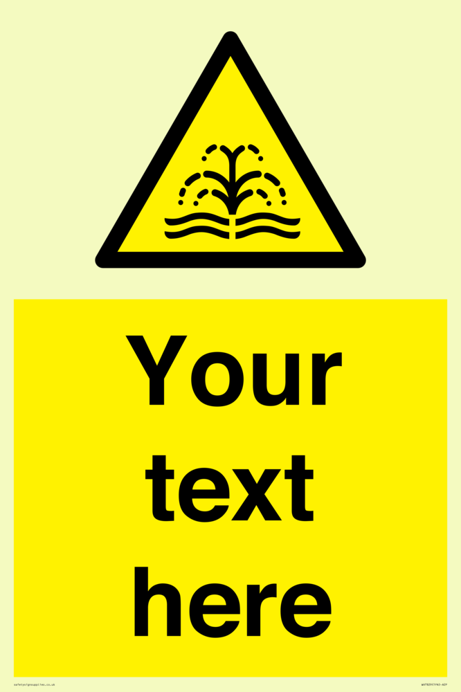Suitable for mounting on a door. Suitable for mounting on cladding. This product is design to be mounted on the ceiling. Custom signs contain the text required by the customer. With your your text and a standard safety sign symbol - a bespoke sign can fit any requirement.