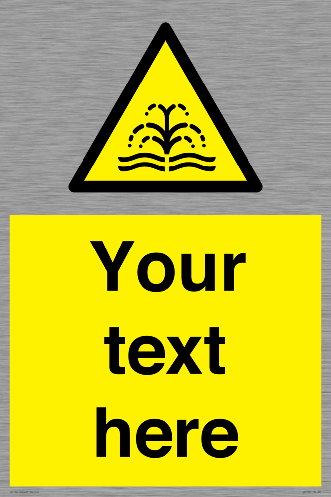 Suitable for mounting on a flat surface. Suitable for mounting on a door. Custom signs contain the text required by the customer. With your your text and a standard safety sign symbol - a bespoke sign can fit any requirement.
