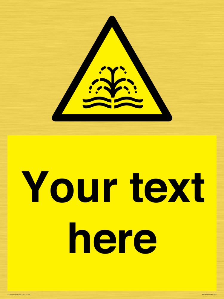 Custom signs contain the text required by the customer. With your your text and a standard safety sign symbol - a bespoke sign can fit any requirement.