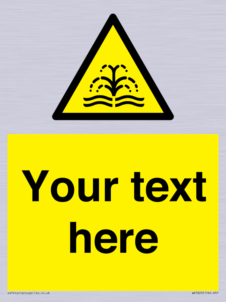 Suitable for hanging installation. Suitable for mounting on a flat surface. Suitable for mounting on a door. Custom signs contain the text required by the customer. With your your text and a standard safety sign symbol - a bespoke sign can fit any requirement.