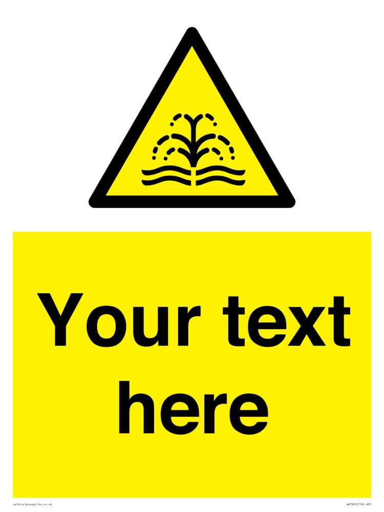 Suitable for mounting on a flat surface. Suitable for mounting on a door. Suitable for mounting on cladding. This product is design to be mounted on the ceiling. Custom signs contain the text required by the customer. With your your text and a standard safety sign symbol - a bespoke sign can fit any requirement.