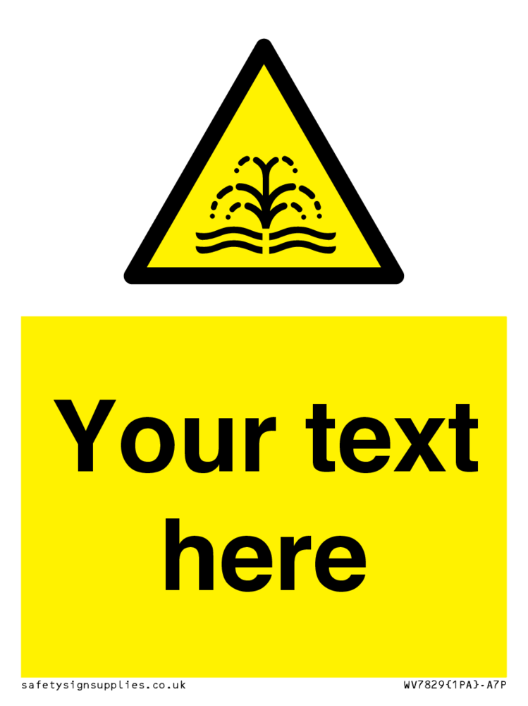 Suitable for mounting on a flat surface. Suitable for mounting on a door. Suitable for mounting on cladding. This product is design to be mounted on the ceiling. Custom signs contain the text required by the customer. With your your text and a standard safety sign symbol - a bespoke sign can fit any requirement.