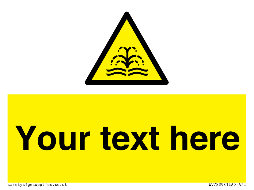 Suitable for mounting on a flat surface. Suitable for mounting on a door. Suitable for mounting on cladding. This product is design to be mounted on the ceiling. Custom signs contain the text required by the customer. With your your text and a standard safety sign symbol - a bespoke sign can fit any requirement.