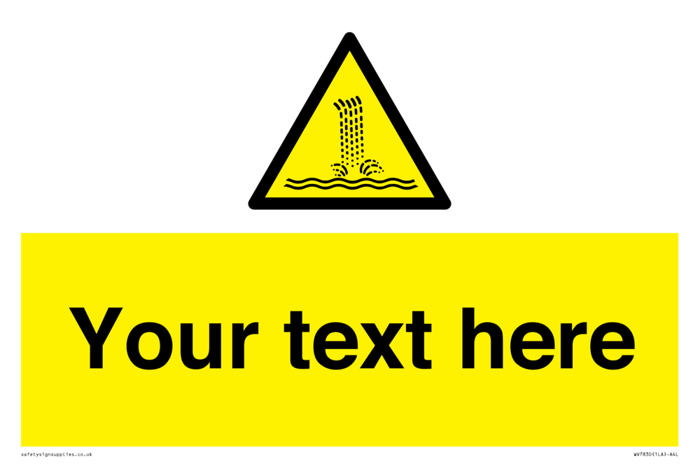 Suitable for mounting on a flat surface. Suitable for mounting on a door. Suitable for mounting on cladding. This product is design to be mounted on the ceiling. Custom signs contain the text required by the customer. With your your text and a standard safety sign symbol - a bespoke sign can fit any requirement.