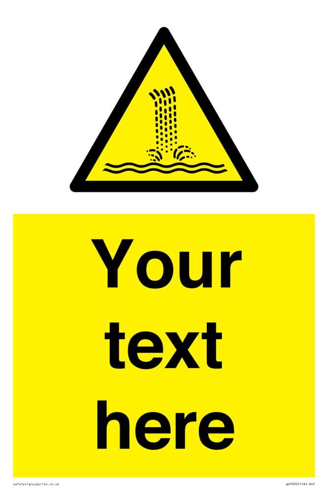 Suitable for mounting on a flat surface. Suitable for mounting on a door. Suitable for mounting on cladding. This product is design to be mounted on the ceiling. Custom signs contain the text required by the customer. With your your text and a standard safety sign symbol - a bespoke sign can fit any requirement.