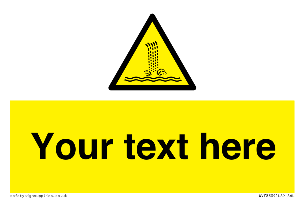 Suitable for mounting on a flat surface. Suitable for mounting on a door. Suitable for mounting on cladding. This product is design to be mounted on the ceiling. Custom signs contain the text required by the customer. With your your text and a standard safety sign symbol - a bespoke sign can fit any requirement.