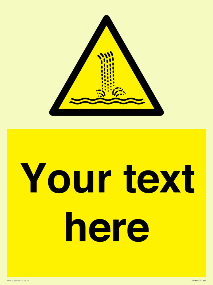 Suitable for mounting on a door. Suitable for mounting on cladding. This product is design to be mounted on the ceiling. Custom signs contain the text required by the customer. With your your text and a standard safety sign symbol - a bespoke sign can fit any requirement.