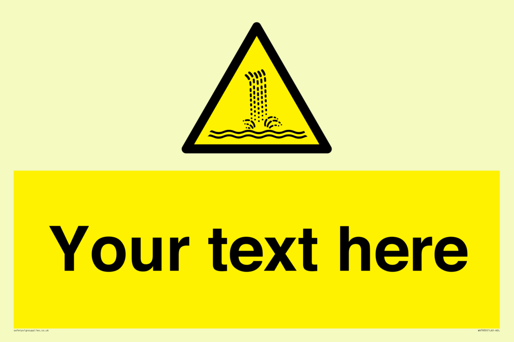 Suitable for mounting on a door. Suitable for mounting on cladding. This product is design to be mounted on the ceiling. Custom signs contain the text required by the customer. With your your text and a standard safety sign symbol - a bespoke sign can fit any requirement.