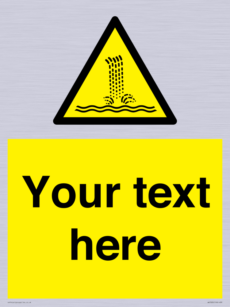Suitable for hanging installation. Suitable for mounting on a flat surface. Suitable for mounting on a door. Custom signs contain the text required by the customer. With your your text and a standard safety sign symbol - a bespoke sign can fit any requirement.