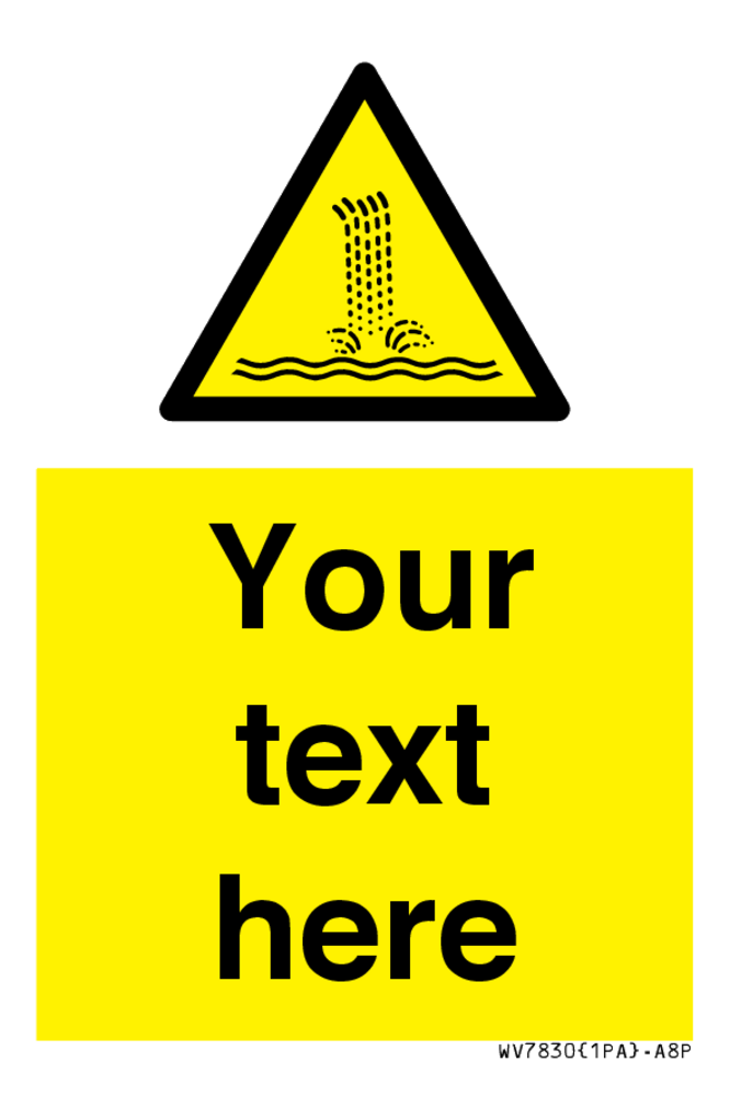 Suitable for mounting on a door. Suitable for mounting on cladding. This product is design to be mounted on the ceiling. Custom signs contain the text required by the customer. With your your text and a standard safety sign symbol - a bespoke sign can fit any requirement.