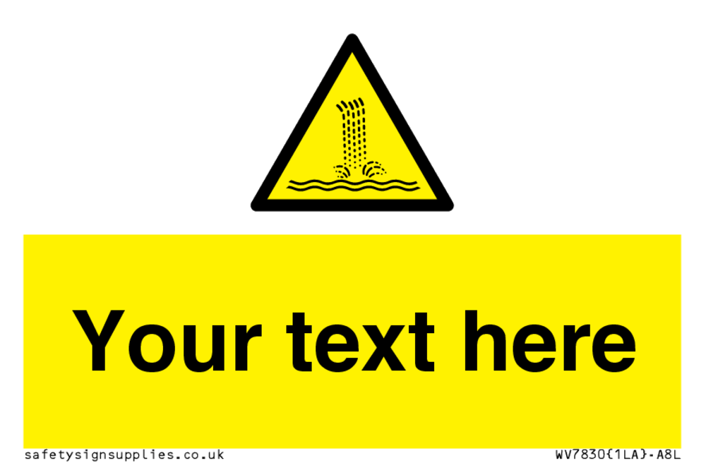 Suitable for mounting on a flat surface. Suitable for mounting on a door. Suitable for mounting on cladding. This product is design to be mounted on the ceiling. Custom signs contain the text required by the customer. With your your text and a standard safety sign symbol - a bespoke sign can fit any requirement.