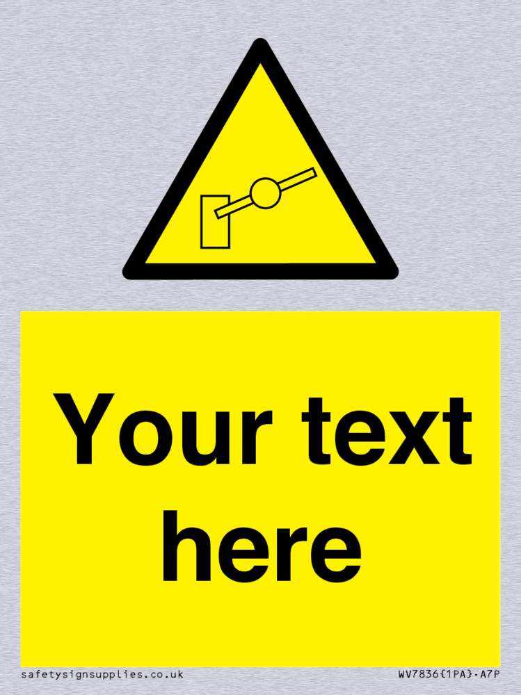 Suitable for mounting on a flat surface. Suitable for mounting on a door. Custom signs contain the text required by the customer. With your your text and a standard safety sign symbol - a bespoke sign can fit any requirement. Signs in this range are from our maximum choice range. Giving you the most choice of signs available in the UK.