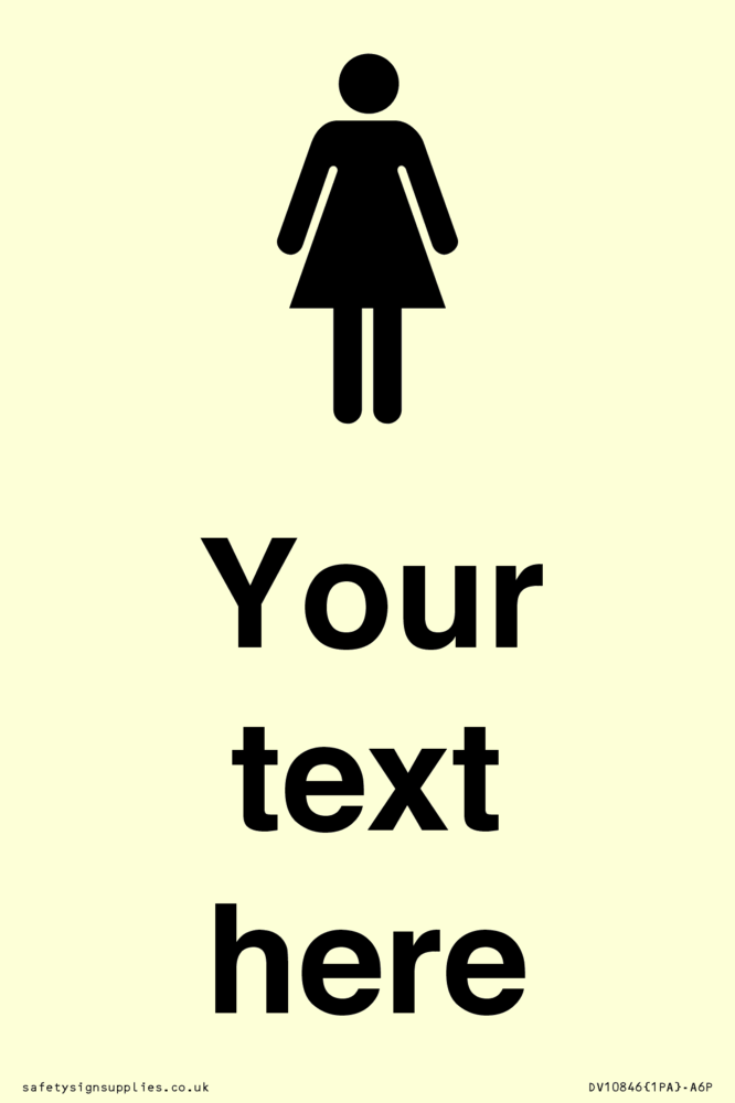 Sign Text: Custom information: female Dimensions: 100x150mm Material: Vinyl Photoluminescent sticker Orientation: Portrait Text Colour: Black Background Colour: White More...