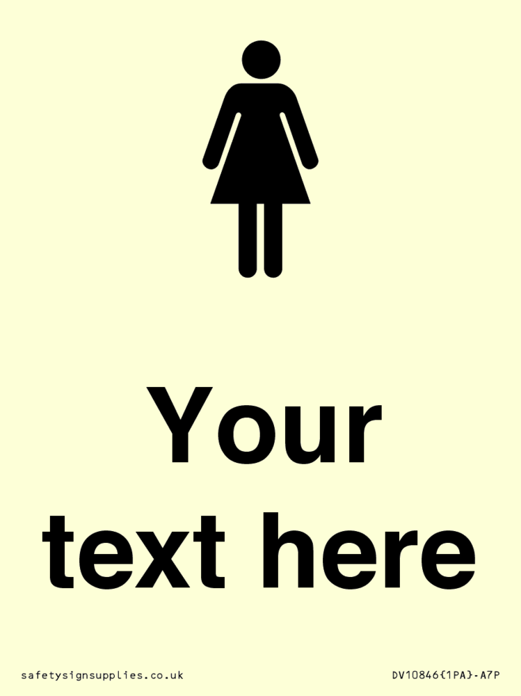 Sign Text: Custom information: female Dimensions: 75x100mm Material: Vinyl Photoluminescent sticker Orientation: Portrait Text Colour: Black Background Colour: White More...