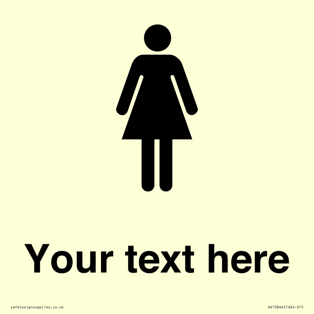 Thickness / Depth: 170microns Durability: 3-5 years Mounting Surface: flat Materials: Sticker Material Colour: Glow in the Dark Custom Text: Custom Export Language: ENGLISH Language (EN) Symbol: I026 : Female Internal Layout: 1SQ : 1 square pod in a Square Unit Dimension: 150x150mm Region: UK