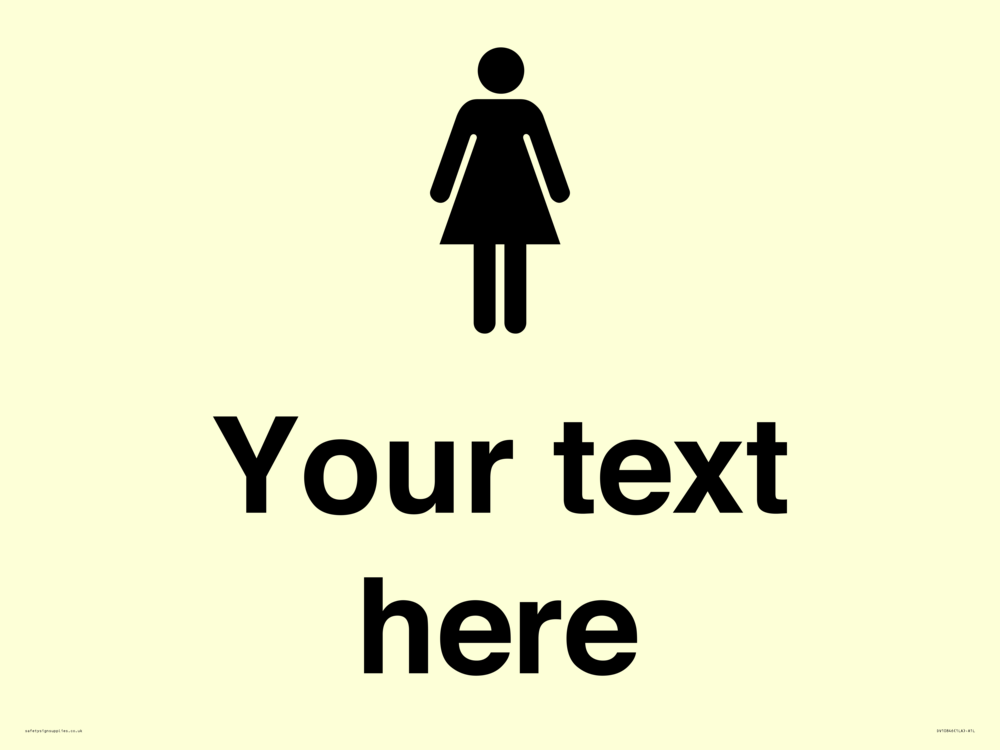 Sign Text: Custom information: female Dimensions: 800x600mm Material: Vinyl Photoluminescent sticker Orientation: Landscape Text Colour: Black Background Colour: White More...