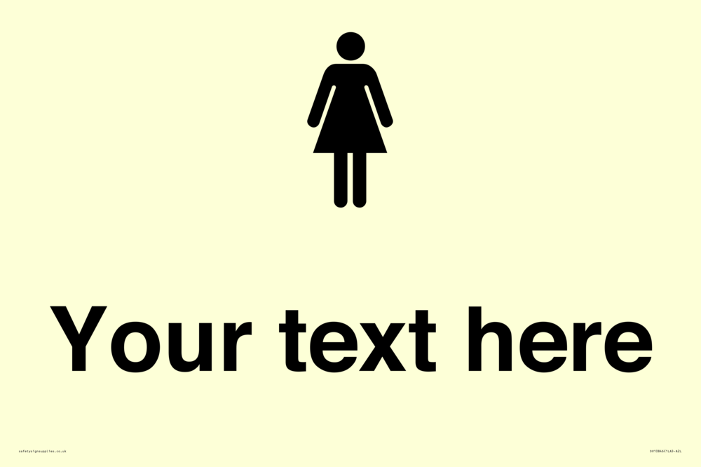 Sign Text: Custom information: female Dimensions: 600x400mm Material: Vinyl Photoluminescent sticker Orientation: Landscape Text Colour: Black Background Colour: White More...