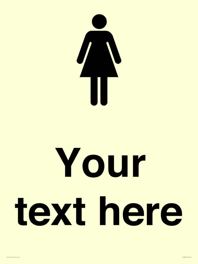 Sign Text: Custom information: female Dimensions: 600x800mm Material: Vinyl Photoluminescent sticker Orientation: Portrait Text Colour: Black Background Colour: White More...