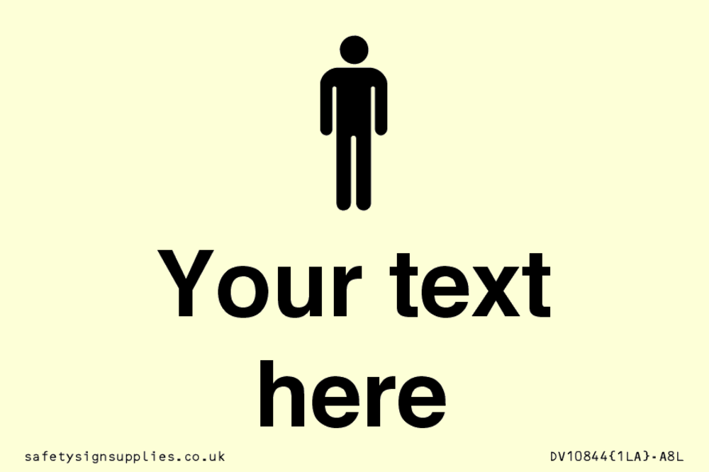 Thickness / Depth: 170microns Durability: 3-5 years Mounting Surface: flat Materials: Sticker Material Colour: Glow in the Dark Custom Text: Custom Export Language: ENGLISH Language (EN) Symbol: I025 : Male Internal Layout: 1LA : 1 landscape pod in a Landscape Unit Dimension: 75x50mm Region: UK