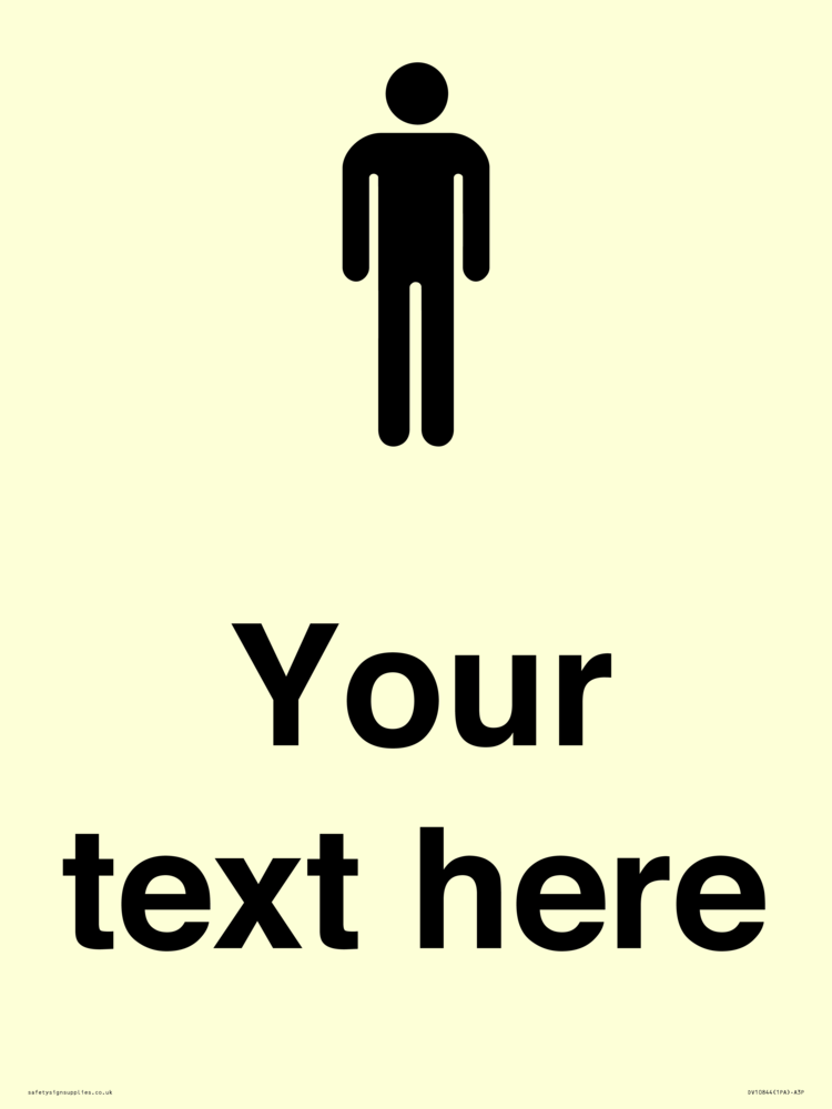 Thickness / Depth: 170microns Durability: 3-5 years Mounting Surface: flat Materials: Sticker Material Colour: Glow in the Dark Custom Text: Custom Export Language: ENGLISH Language (EN) Symbol: I025 : Male Internal Layout: 1PA : 1 portrait pod in a Portrait Unit Dimension: 300x400mm Region: UK