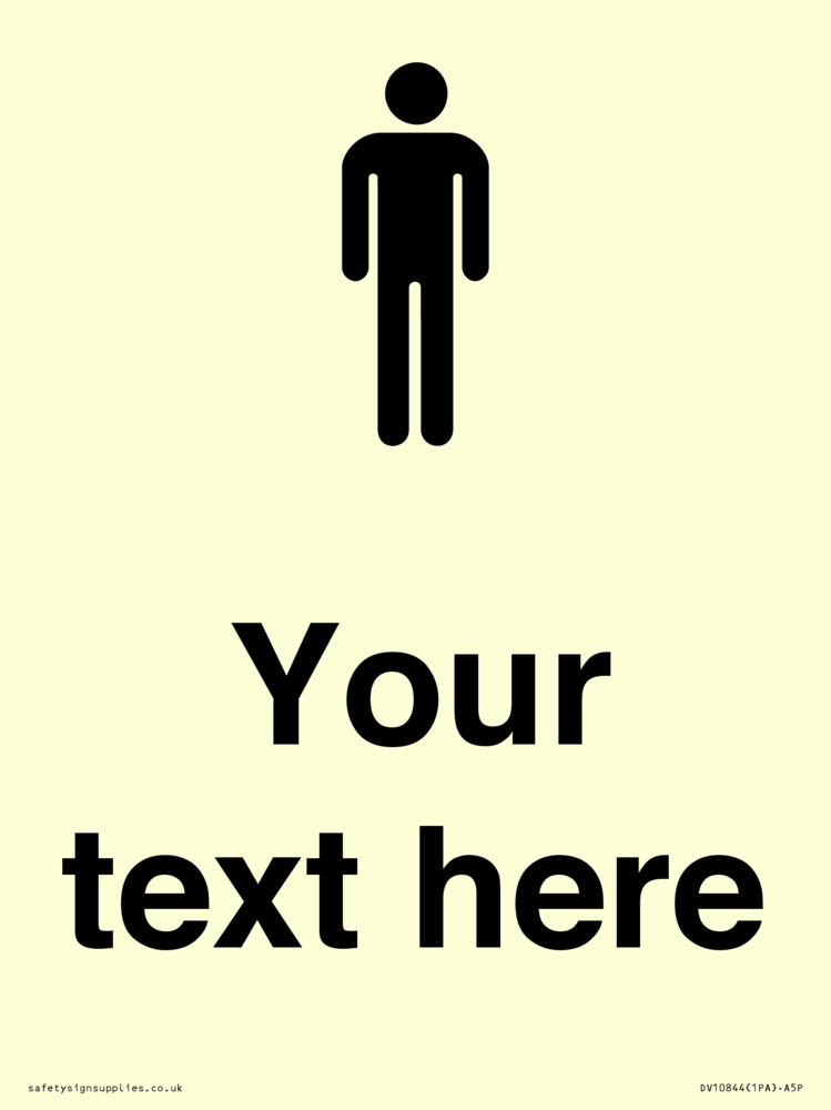 Thickness / Depth: 170microns Durability: 3-5 years Mounting Surface: flat Materials: Sticker Material Colour: Glow in the Dark Custom Text: Custom Export Language: ENGLISH Language (EN) Symbol: I025 : Male Internal Layout: 1PA : 1 portrait pod in a Portrait Unit Dimension: 150x200mm Region: UK
