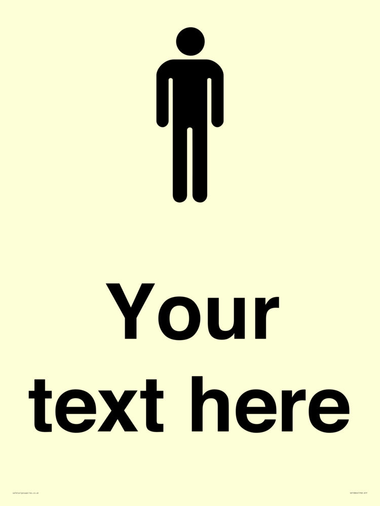 Thickness / Depth: 170microns Durability: 3-5 years Mounting Surface: flat Materials: Sticker Material Colour: Glow in the Dark Custom Text: Custom Export Language: ENGLISH Language (EN) Symbol: I025 : Male Internal Layout: 1PA : 1 portrait pod in a Portrait Unit Dimension: 600x800mm Region: UK