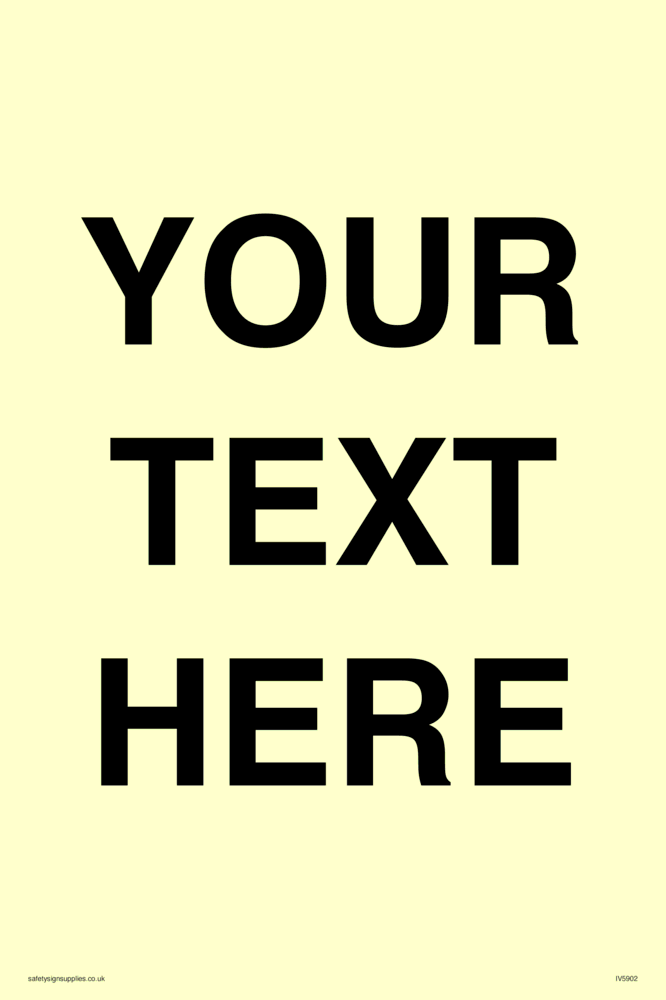 This sign is a custom information sign, this contains no symbols. Fill the entire space with your custom text and it will be added in black Helvetica bold font.