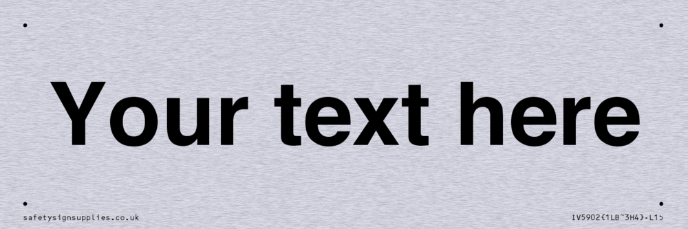 This sign is a custom information sign, this contains no symbols. Fill the entire space with your custom text and it will be added in black Helvetica bold font.