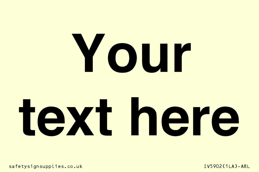 This sign is a custom information sign, this contains no symbols. Fill the entire space with your custom text and it will be added in black Helvetica bold font.