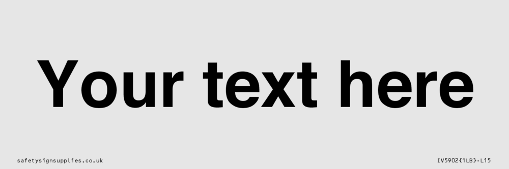 This sign is a custom information sign, this contains no symbols. Fill the entire space with your custom text and it will be added in black Helvetica bold font.