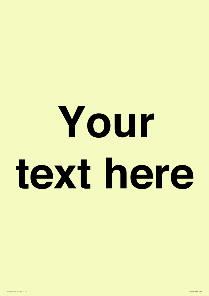 This sign is a custom information sign, this contains no symbols. Fill the entire space with your custom text and it will be added in black Helvetica bold font.