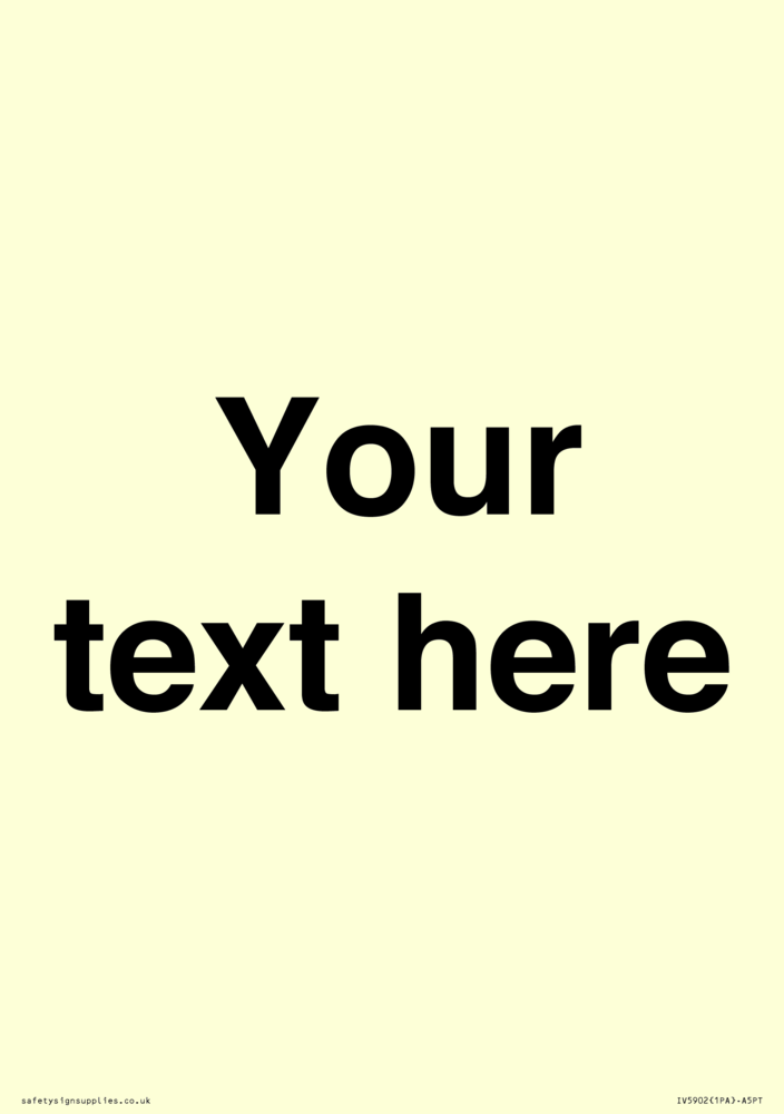 This sign is a custom information sign, this contains no symbols. Fill the entire space with your custom text and it will be added in black Helvetica bold font.
