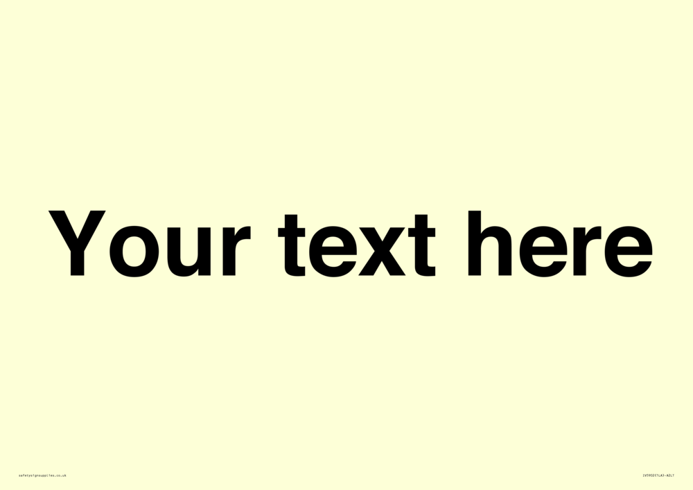 This sign is a custom information sign, this contains no symbols. Fill the entire space with your custom text and it will be added in black Helvetica bold font.