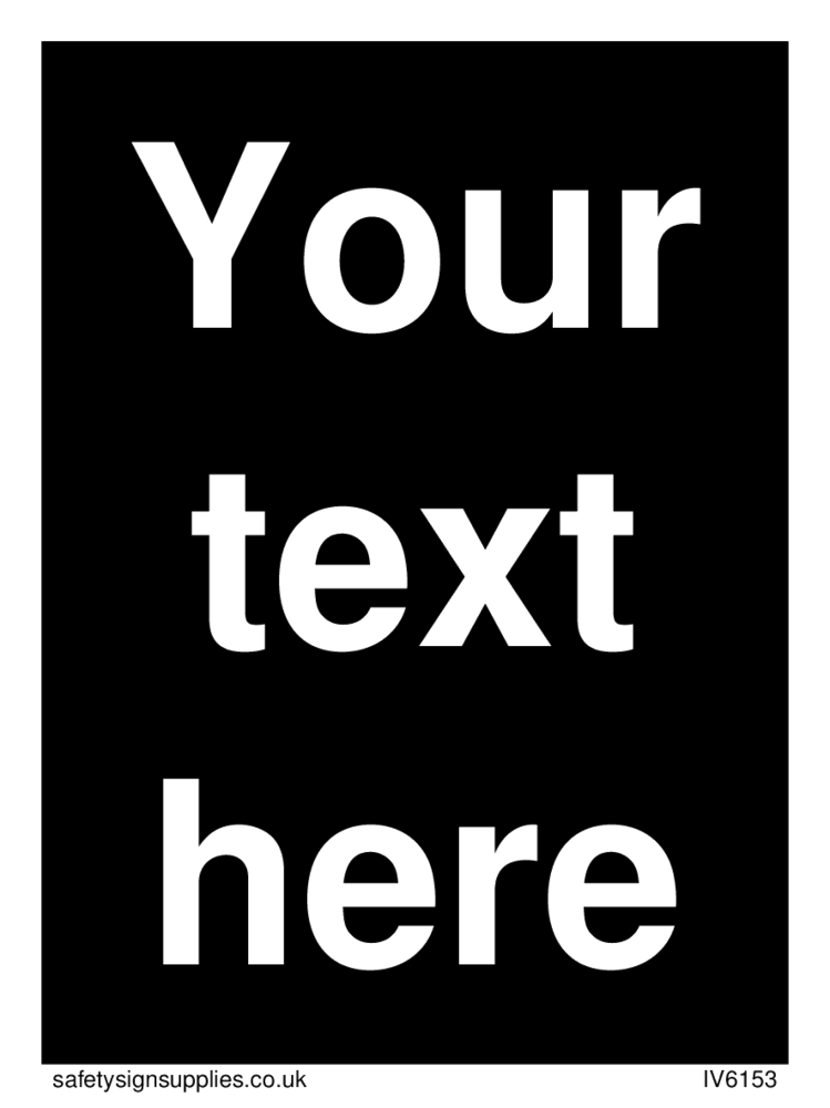 Suitable for mounting on an uneven surface Suitable for fixing to a suspended ceiling. Suitable for mounting on a smooth surface Custom signs contain the text required by the customer. With your your text and a standard safety sign symbol - a bespoke sign can fit any requirement. Signs in this range are from our maximum choice range. Giving you the most choice of signs available in the UK.