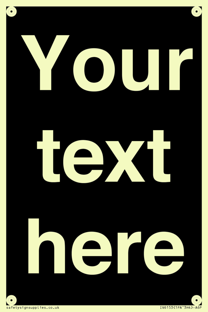 This is a photoluminescent, glow in the dark 1mm rigid pvc sign.