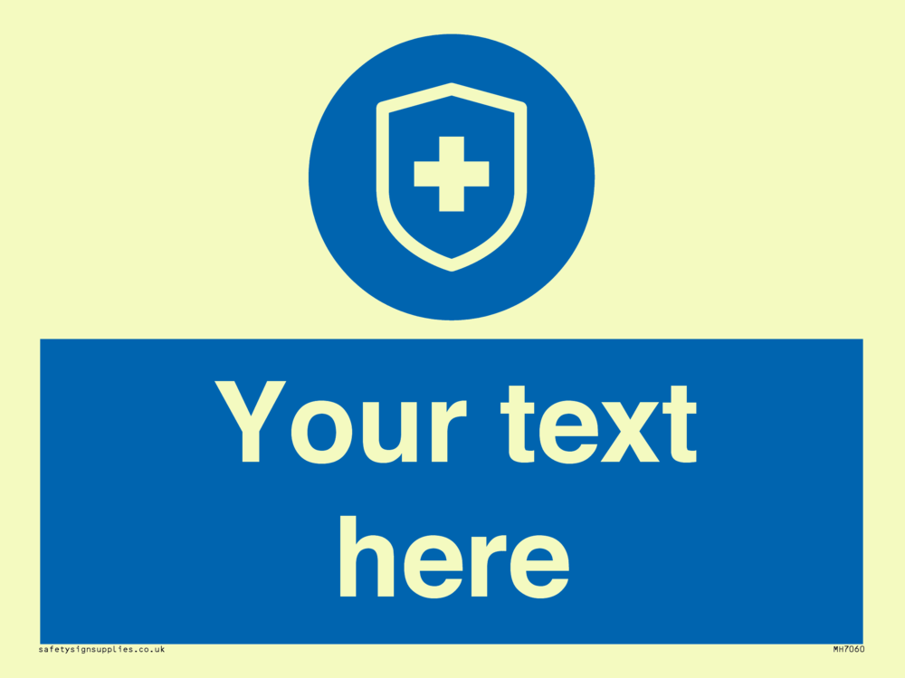 Suitable for mounting on a door. Suitable for mounting on cladding. This product is design to be mounted on the ceiling. Custom signs contain the text required by the customer. With your your text and a standard safety sign symbol - a bespoke sign can fit any requirement.