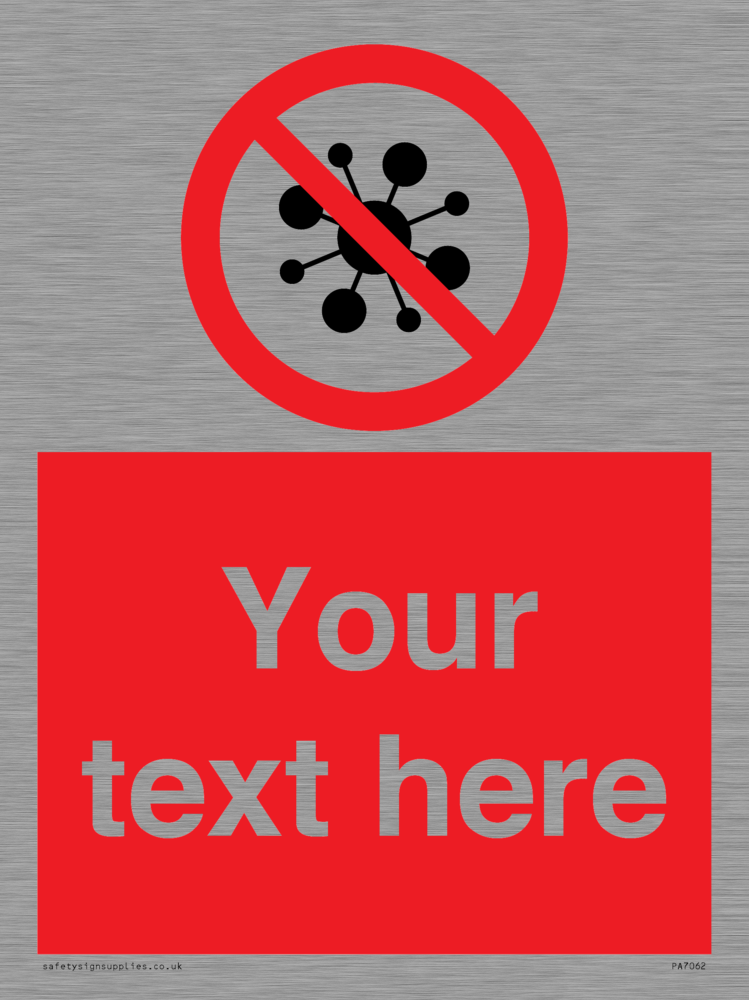 Suitable for mounting on a flat surface. Suitable for mounting on a door. Custom signs contain the text required by the customer. With your your text and a standard safety sign symbol - a bespoke sign can fit any requirement.