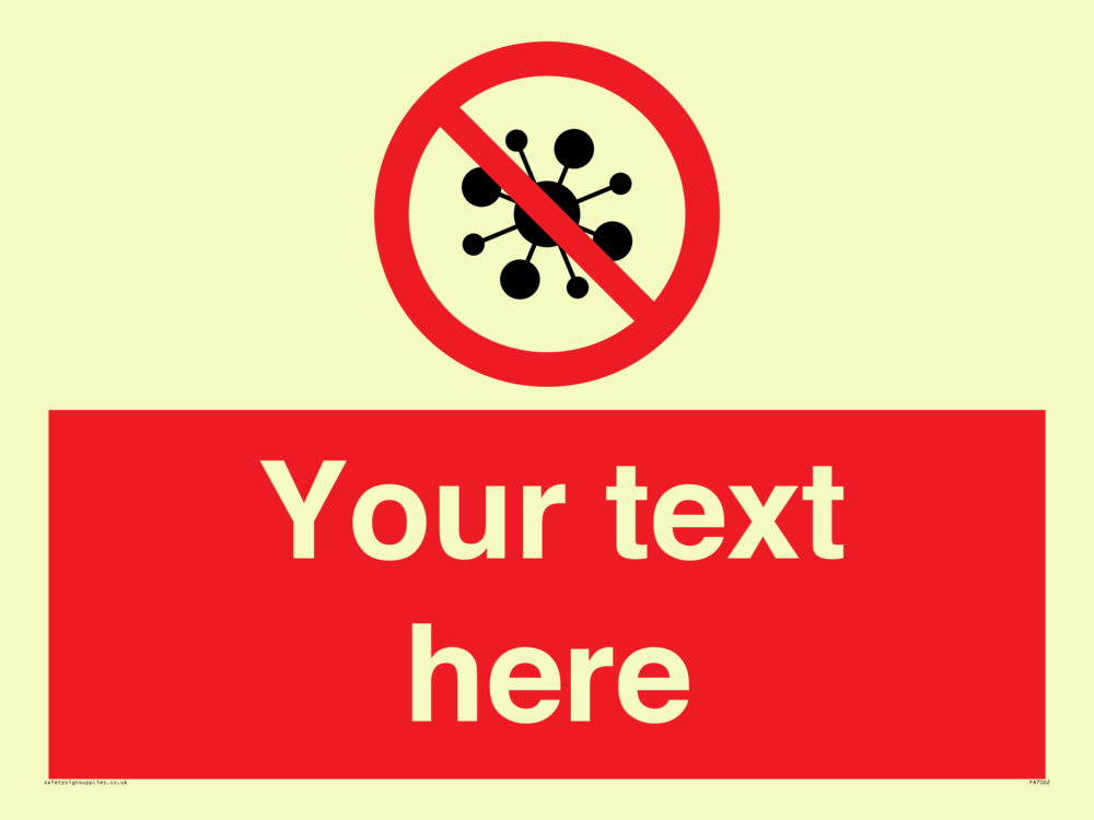 Suitable for mounting on a door. Suitable for mounting on cladding. This product is design to be mounted on the ceiling. Custom signs contain the text required by the customer. With your your text and a standard safety sign symbol - a bespoke sign can fit any requirement.
