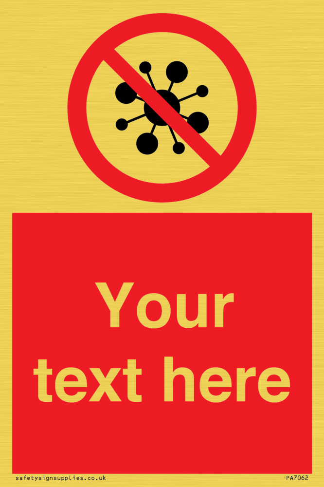 Suitable for hanging installation. Suitable for mounting on a flat surface. Suitable for mounting on a door. Custom signs contain the text required by the customer. With your your text and a standard safety sign symbol - a bespoke sign can fit any requirement.