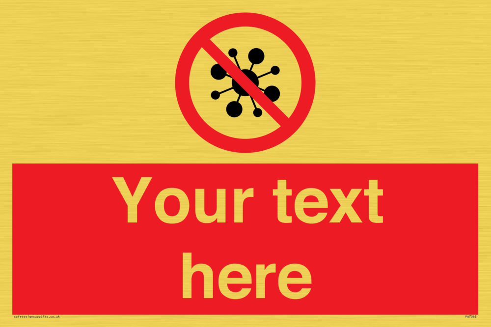 Suitable for hanging installation. Suitable for mounting on a flat surface. Suitable for mounting on a door. Custom signs contain the text required by the customer. With your your text and a standard safety sign symbol - a bespoke sign can fit any requirement.
