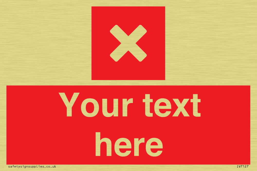 Suitable for mounting on a flat surface. Suitable for mounting on a door. Custom signs contain the text required by the customer. With your your text and a standard safety sign symbol - a bespoke sign can fit any requirement.