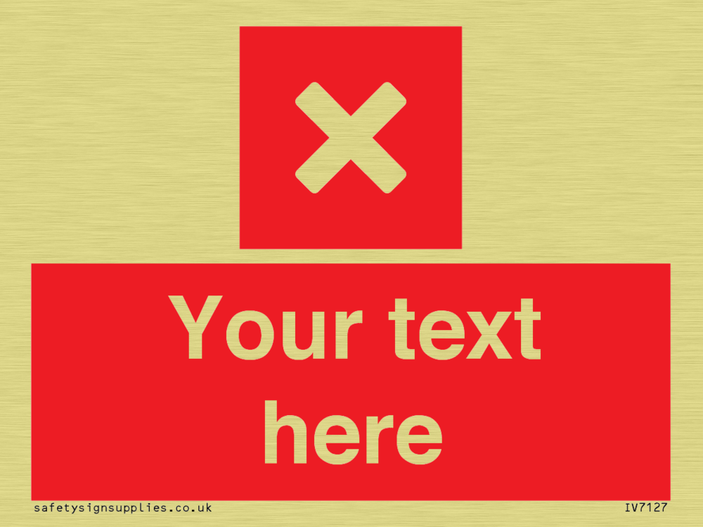 Suitable for mounting on a flat surface. Suitable for mounting on a door. Custom signs contain the text required by the customer. With your your text and a standard safety sign symbol - a bespoke sign can fit any requirement.