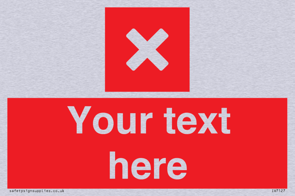 Suitable for mounting on a flat surface. Suitable for mounting on a door. Custom signs contain the text required by the customer. With your your text and a standard safety sign symbol - a bespoke sign can fit any requirement.
