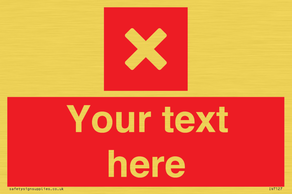 Suitable for mounting on a metallic surface. Suitable for hanging installation. Suitable for mounting on a flat surface. Suitable for mounting on a door. Custom signs contain the text required by the customer. With your your text and a standard safety sign symbol - a bespoke sign can fit any requirement.