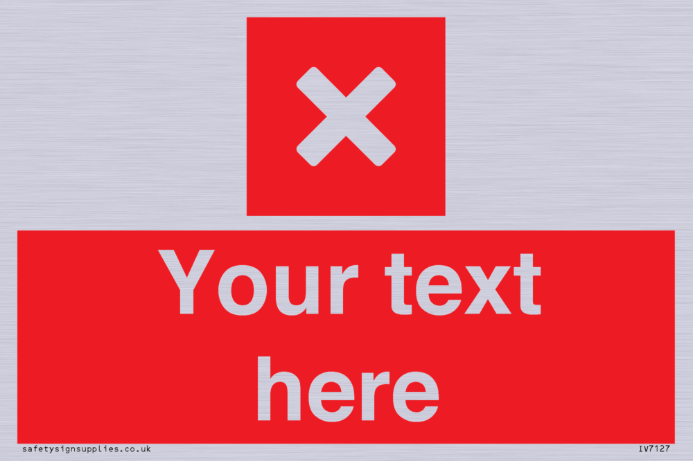 Suitable for mounting on a metallic surface. Suitable for hanging installation. Suitable for mounting on a flat surface. Suitable for mounting on a door. Custom signs contain the text required by the customer. With your your text and a standard safety sign symbol - a bespoke sign can fit any requirement.
